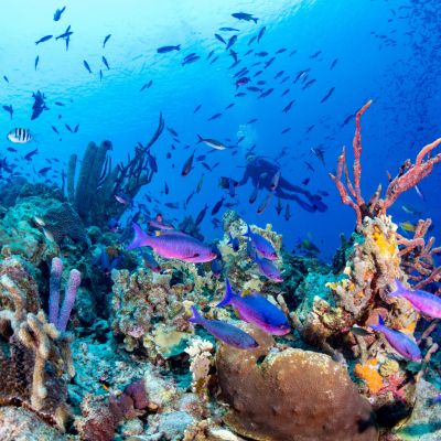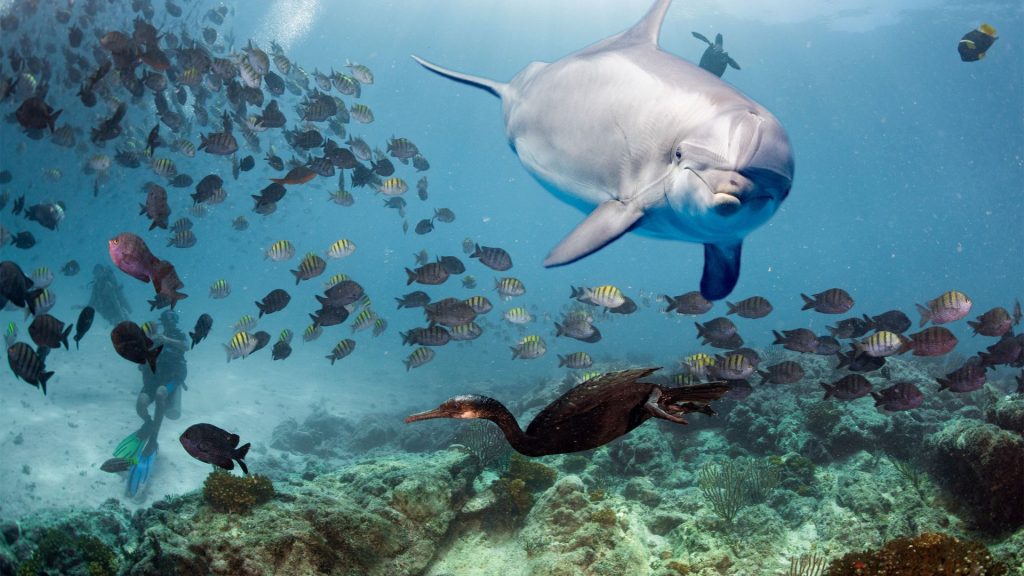 Spot dolphins, sea turtles, tropical birds, mangroves, and reef fish in their natural habitats.